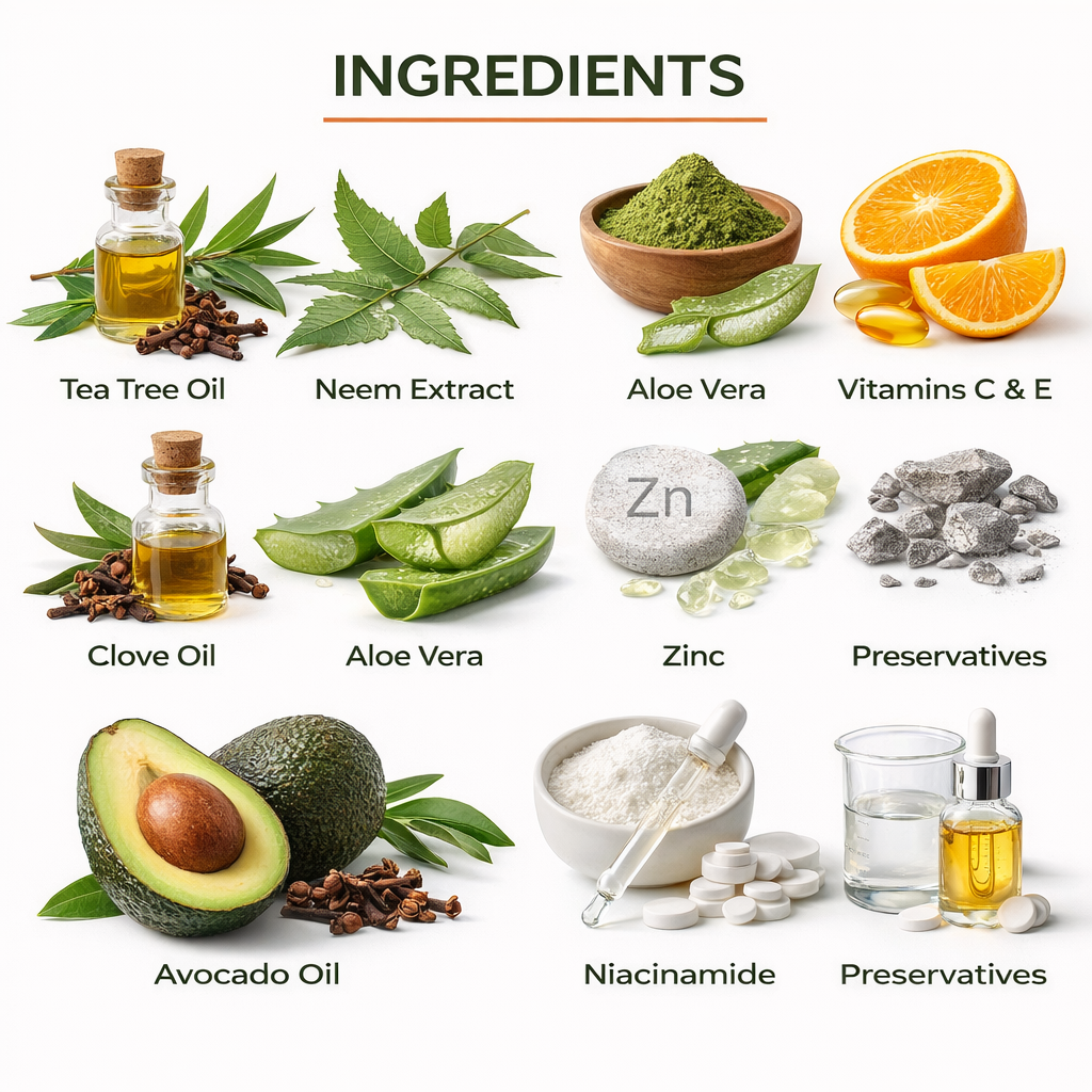 - Neem Extract – Purifies skin & prevents pimples