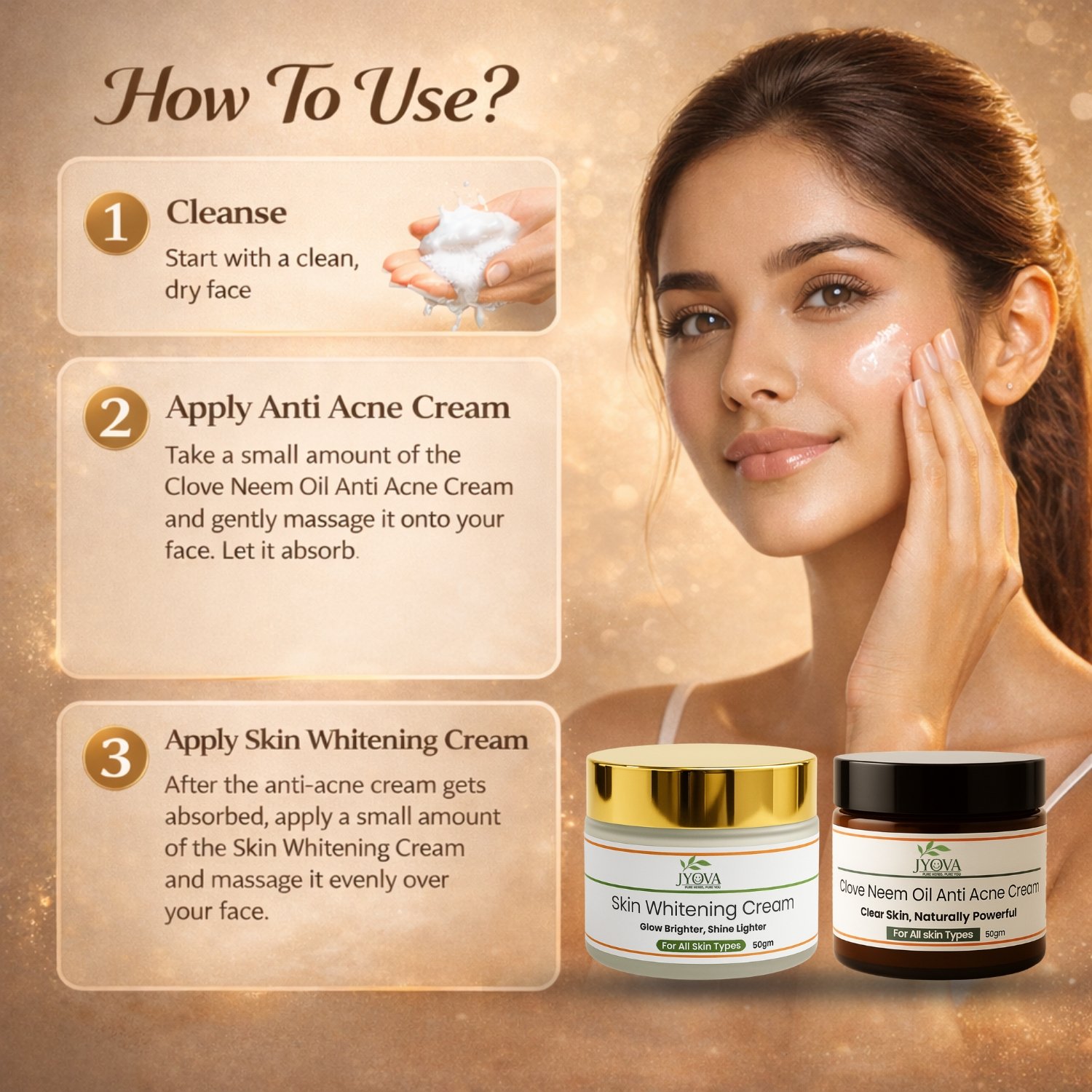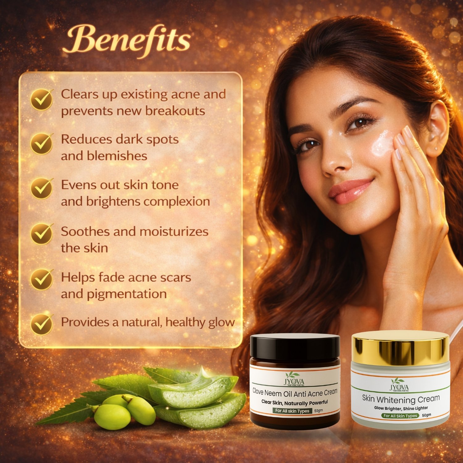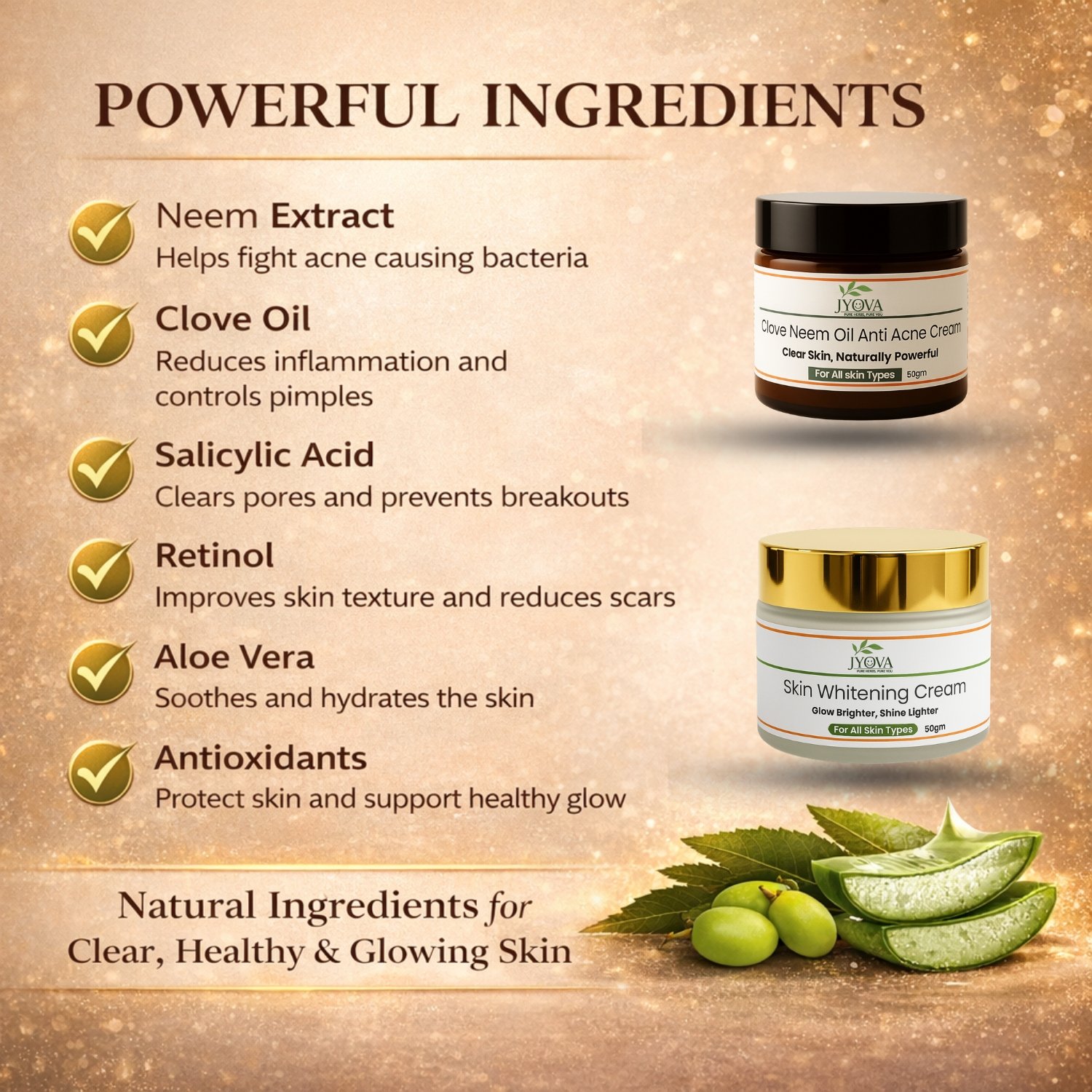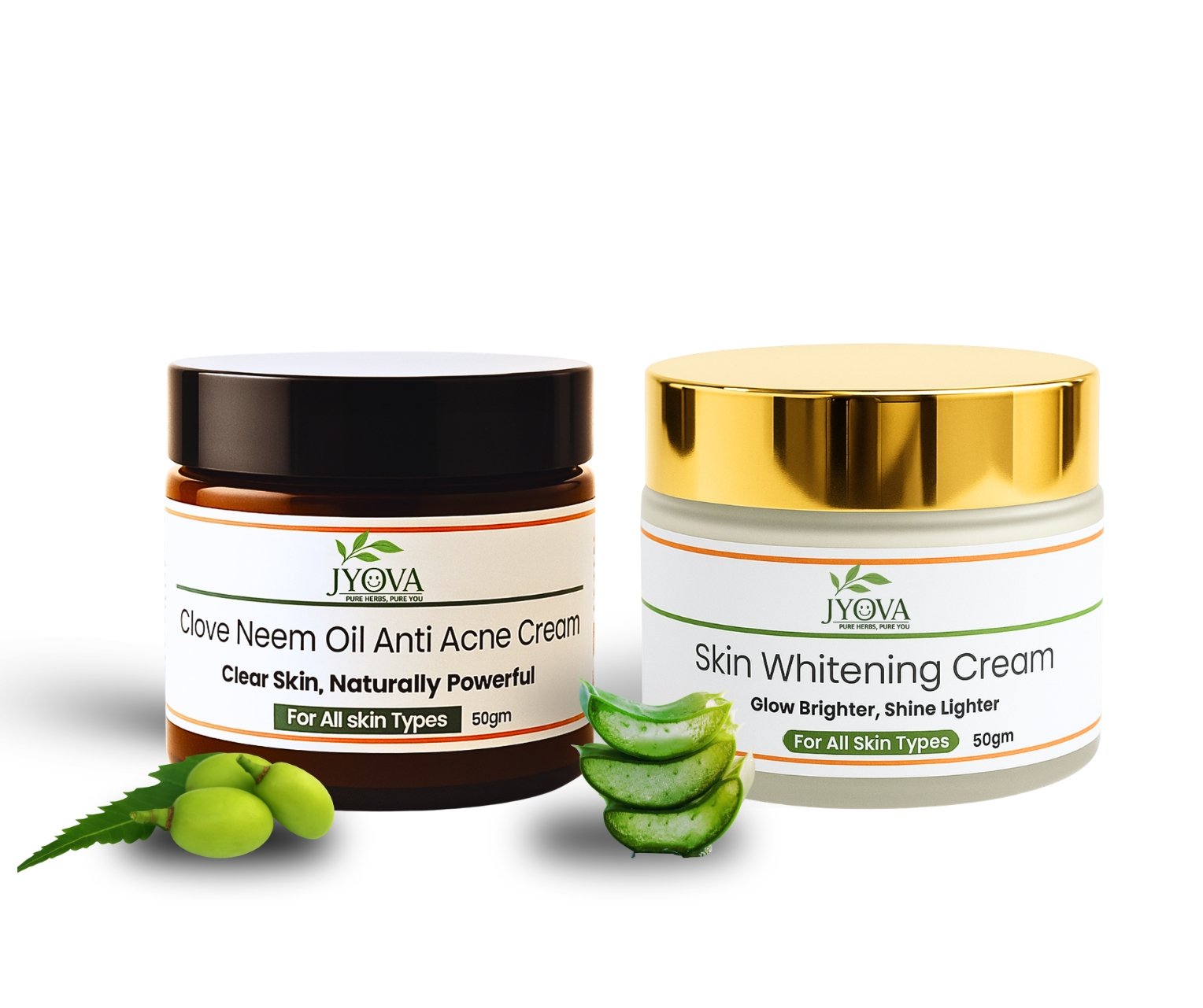 Jyova Skin Repair Combo – Clove Neem Anti Acne Cream & Skin Whitening Cream | Pimple Removal, Dark Spot Reduction & Brightening | For All Skin Types