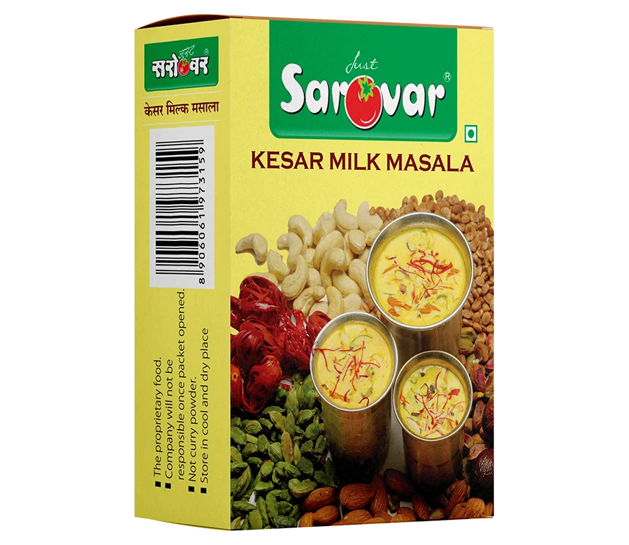 Kesar Milk Masala by Sarovar Masala is a premium blend of saffron (kesar), nuts, and aromatic spices crafted to enhance the taste of milk. It delivers a rich, creamy, and mildly sweet flavor with a delightful aroma, making every glass of milk more delicious and nutritious.