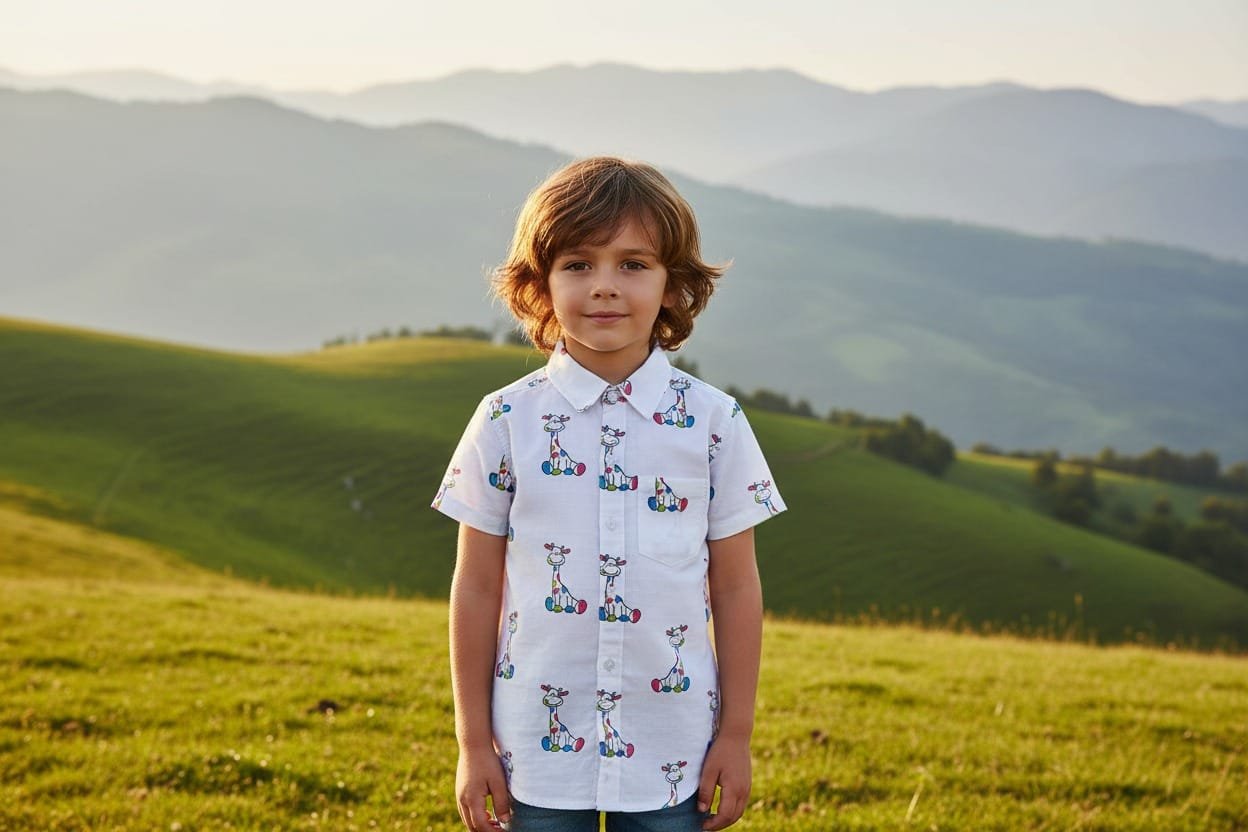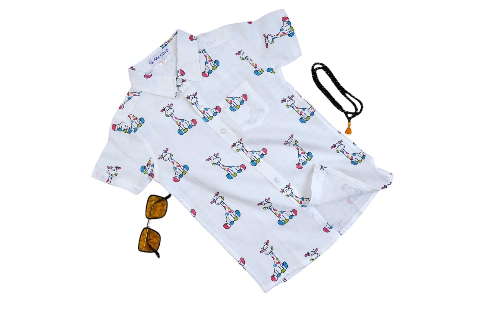 Kids Linen Cotton Giraffe Print Shirt – Cute Half Sleeve Casual Shirt for Boys & Kids | Moghra