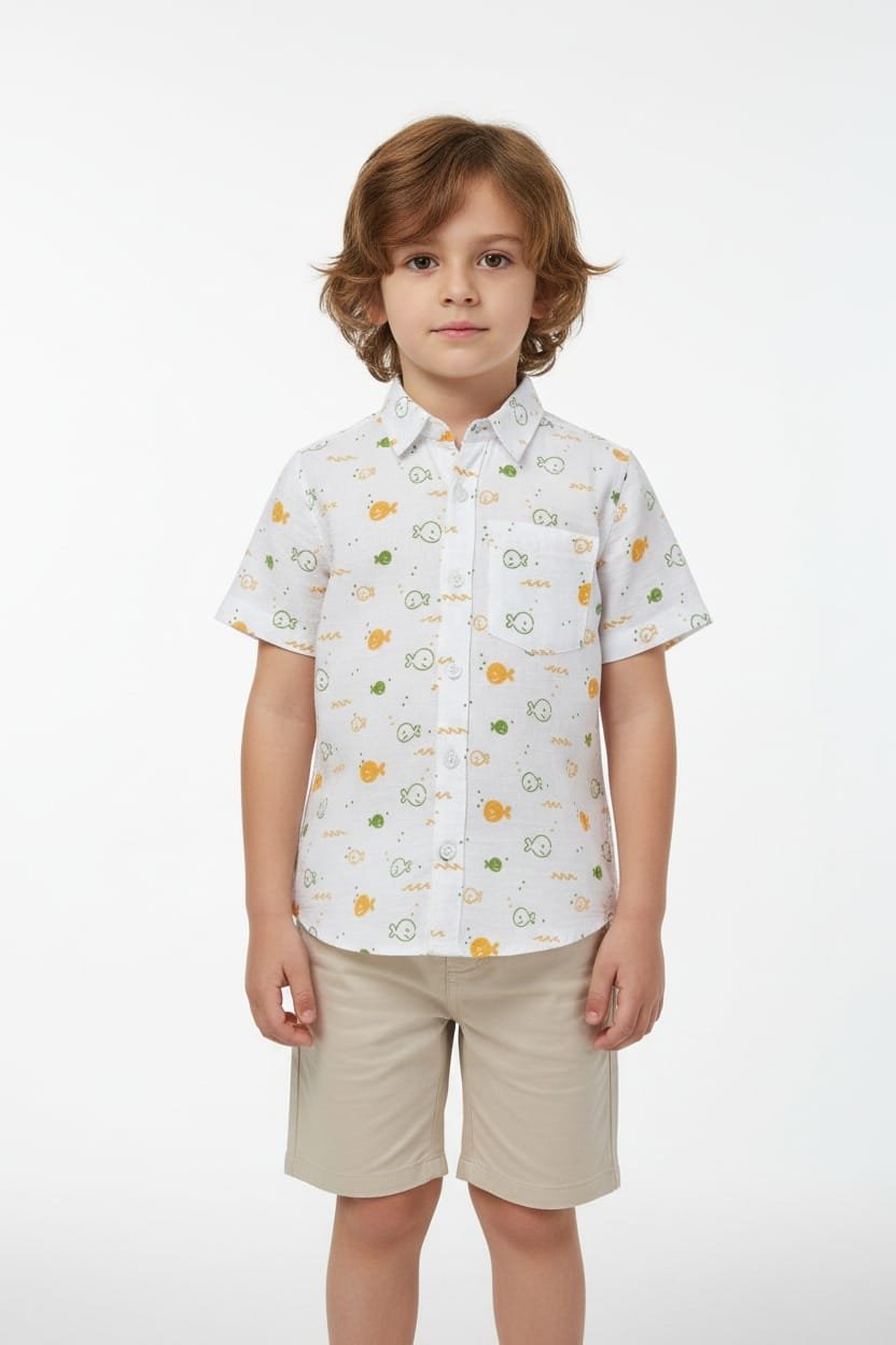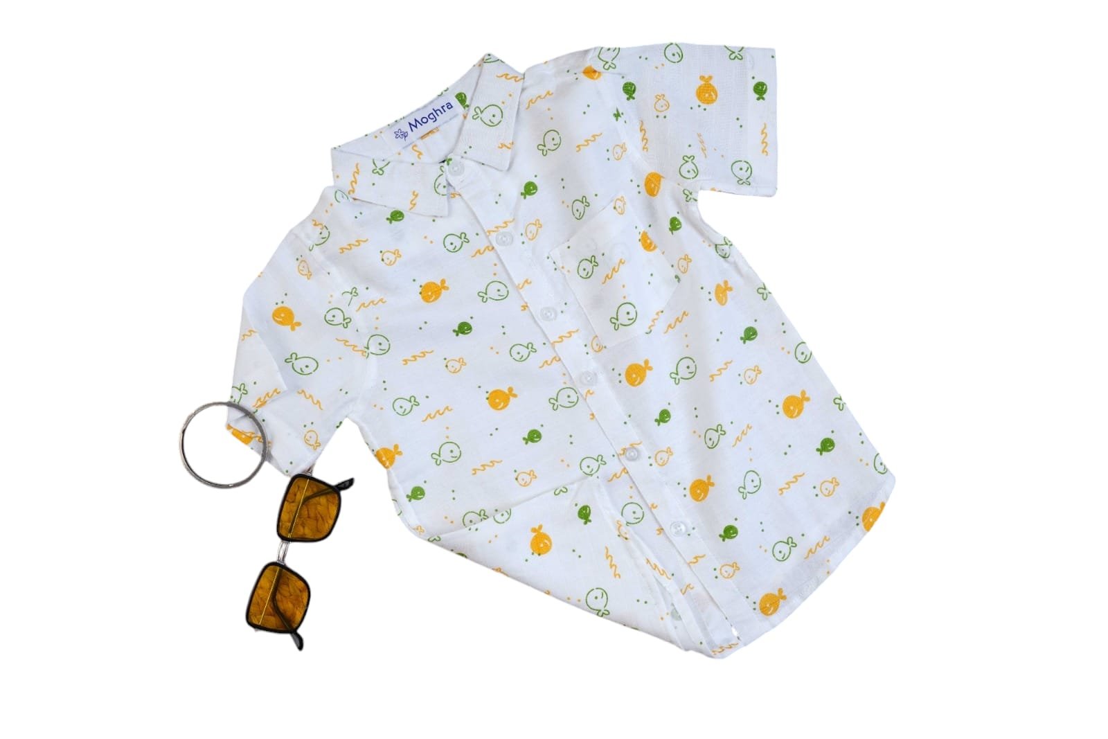 Kids Linen Cotton Printed Shirt – Cute Fish Print Half Sleeve Shirt for Boys & Kids | Moghra