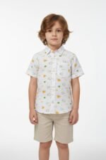Crafted from high-quality linen cotton fabric, this shirt ensures maximum comfort and breathability. The lightweight material keeps your child cool during warm days, while the smart collar and button design give a trendy and polished look.