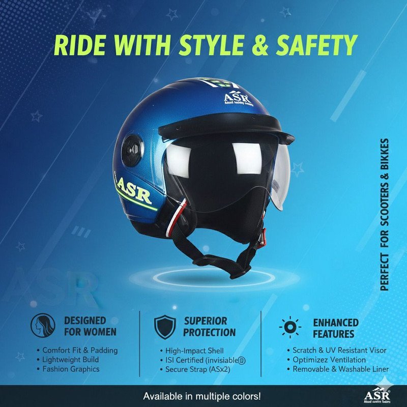 Ladies Lightweight Helmet with Clear Visor, ISI Certified Motorbike Helmet (Blue) | ASR Ahad Safety Riders