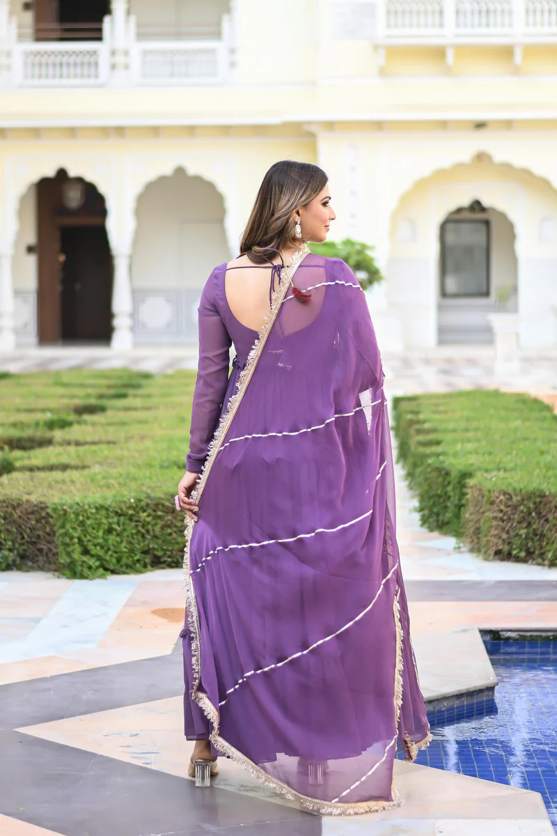 This Anarkali set is ideal for women who love pastel tones with a modern ethnic touch. The soothing lavender shade offers a fresh and classy appearance, making it suitable for casual gatherings, festive celebrations, and special events.