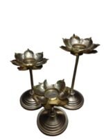 Lotus Tea Light Holder Decorative Candle Stand Metal Flower Antique Brass for Home Decor Indian Pooja Room Piece Traditional Festive Floral Design Three-Piece Elegant Set Spiritual Shape Item Gifting