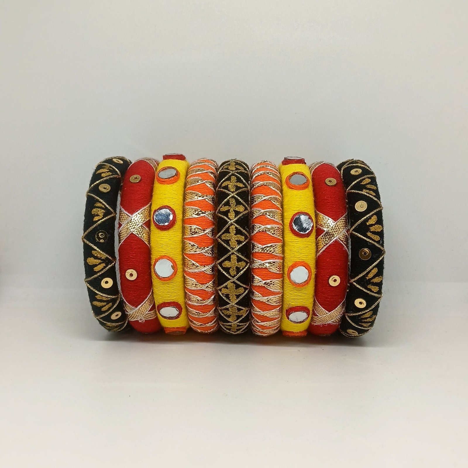 Mandira [Black yellow and red colour handcrafted bangles] | NDFASHION