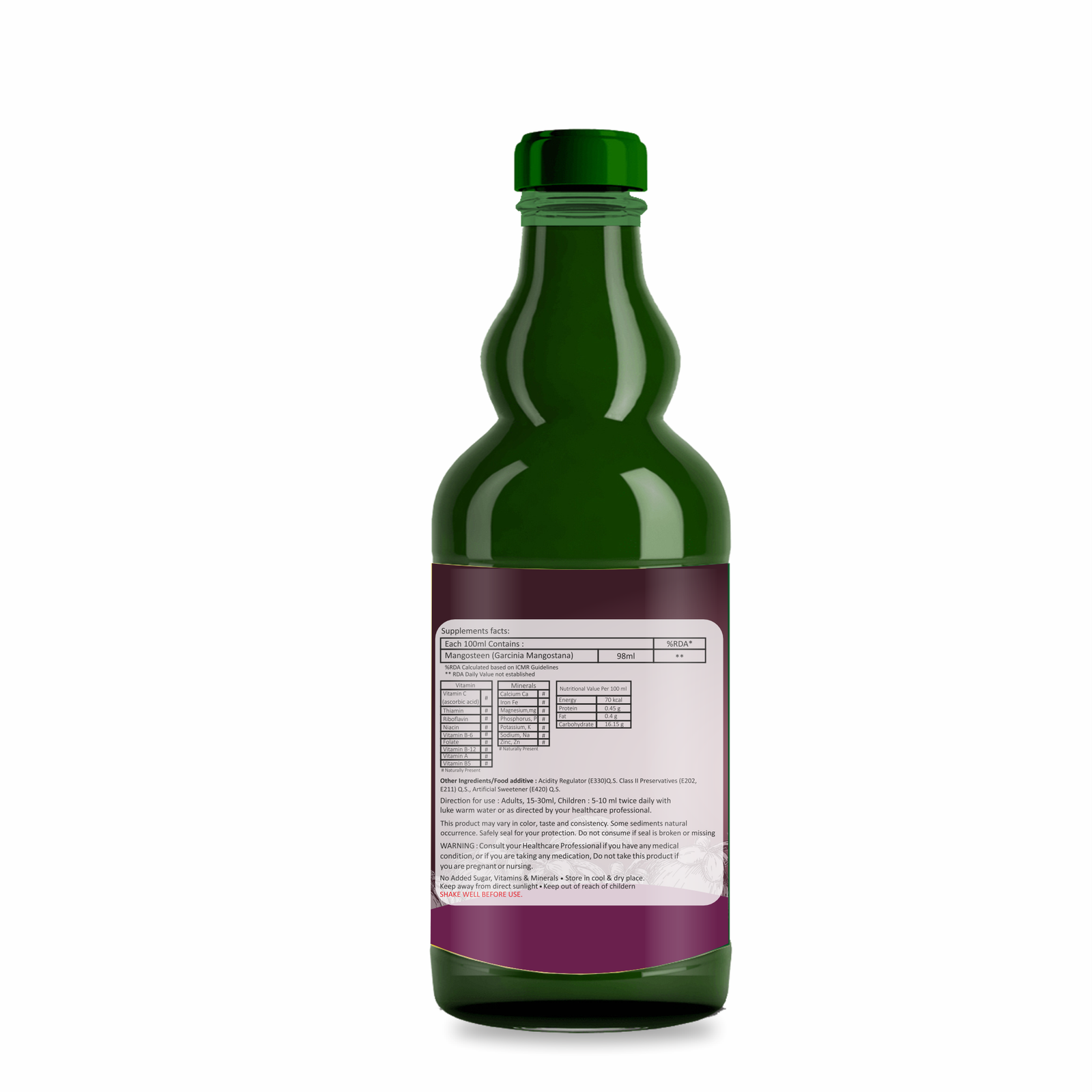 • Interactions: Consult a healthcare provider if you are pregnant, breastfeeding, or on medication, as mangosteen juice can interact with certain drugs.