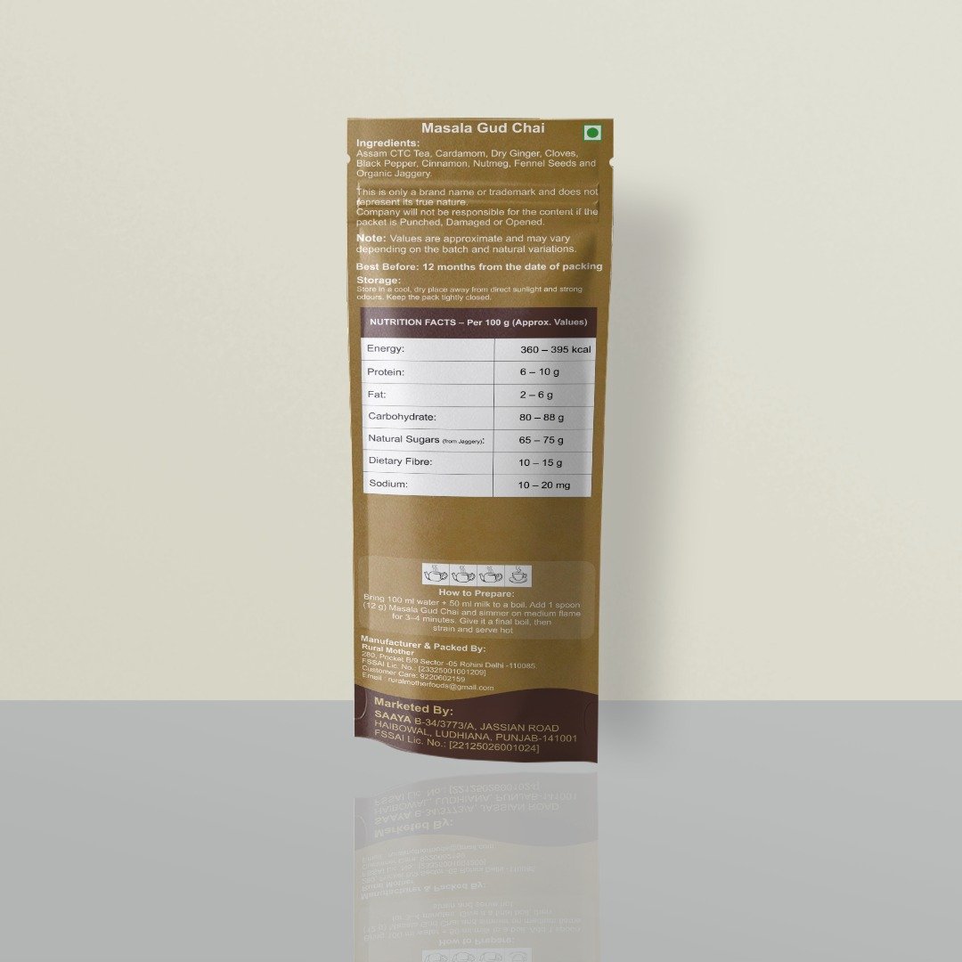 Rural Mother Masala Gud Chai is a perfect blend of strong tea leaves, aromatic Indian spices, and the natural sweetness of jaggery (gud). Crafted for those who love bold, spiced tea with a traditional touch, this premium blend delivers rich flavour and good taste in every cup.