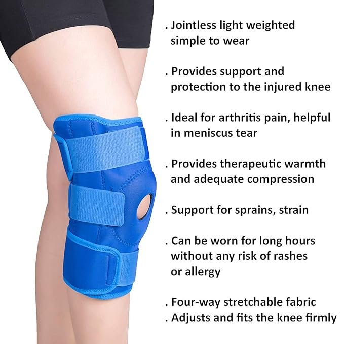 • UNISEX KNEE CAP OPEN PATELLA: This blue color open patella hinged knee stabilizer for knee joint pain relief is for all the genders, and can be used as open patella hinged knee brace for women and open patella hinged knee brace for men.