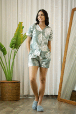 Be the first to review “Mint Green Leaf Printed Cotton Shirt & Shorts Nightwear Set for Women”