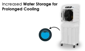 The Mirchi Cool 12055 features a 55-liter water tank for longer cooling hours with fewer refills, ideal for extended or overnight use. Its single side honeycomb pad improves moisture retention and airflow, delivering more efficient and consistent cooling.