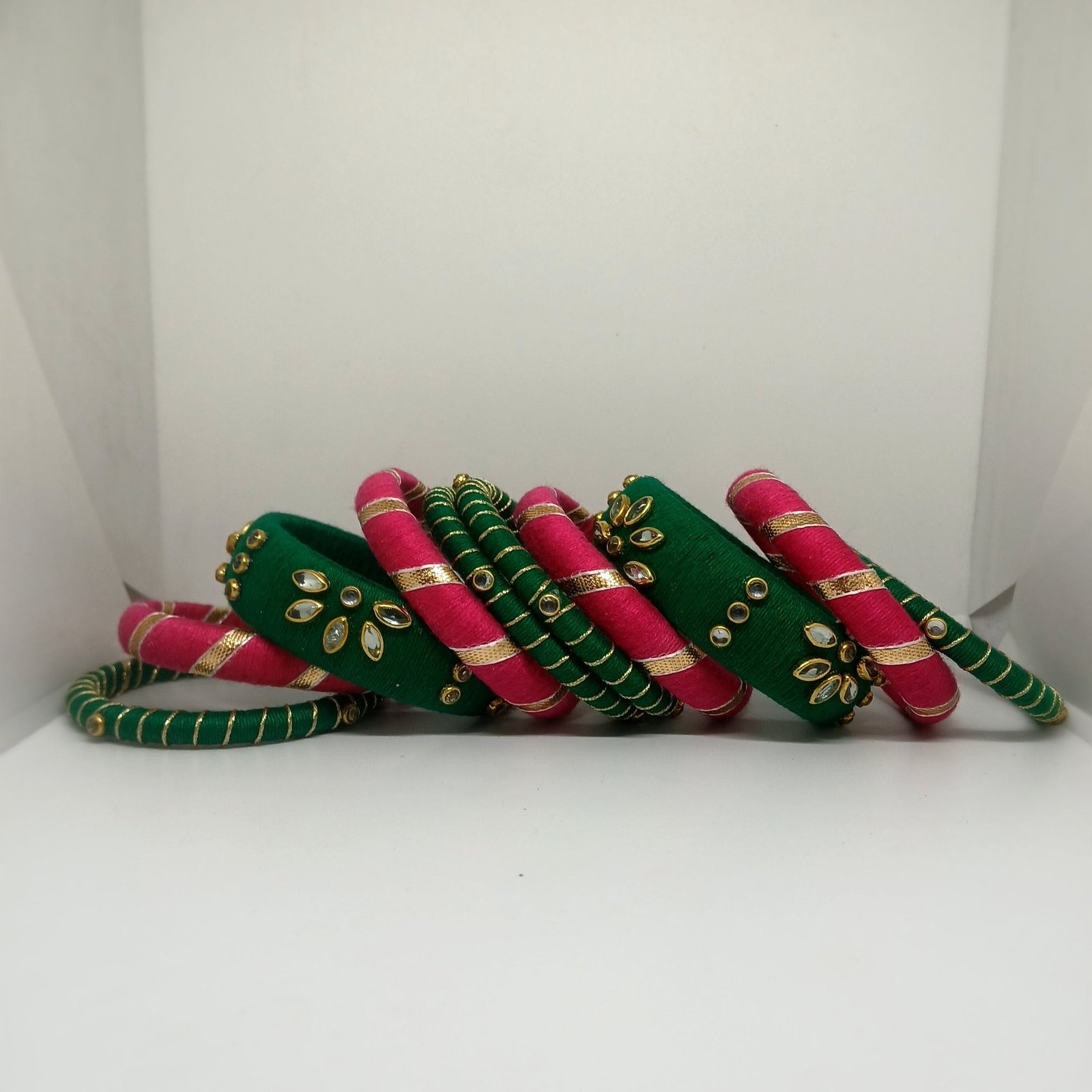 Mohini[Pink and green Handcrafted Bangles] | NDFASHION