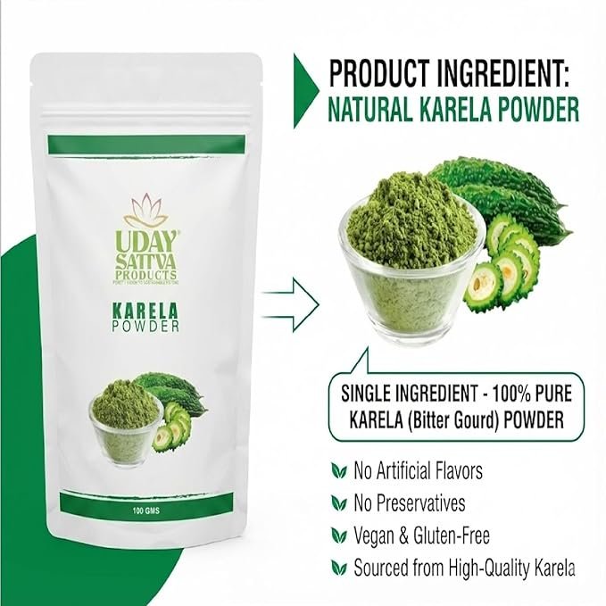 Natural Karela Powder (100g) – 100% Pure Bitter Gourd – Energy Booster & Heart Health Support – Vegan, Gluten-Free, No Preservatives | Uday sattva