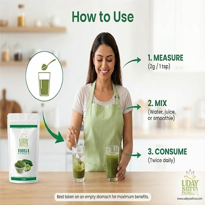 - DIGESTION & BONE STRENGTH: Uday Sattva Karela Powder aids digestion, helping to maintain a healthy gut. Additionally, it helps in strengthening bones, supporting your body’s structural health.