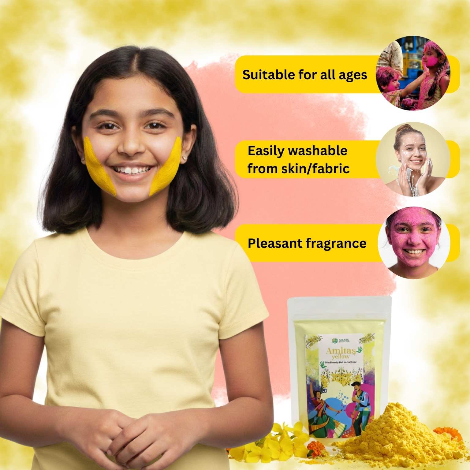 Natural Yellow Holi Colors | Organic Holi Color | Nisarg organic