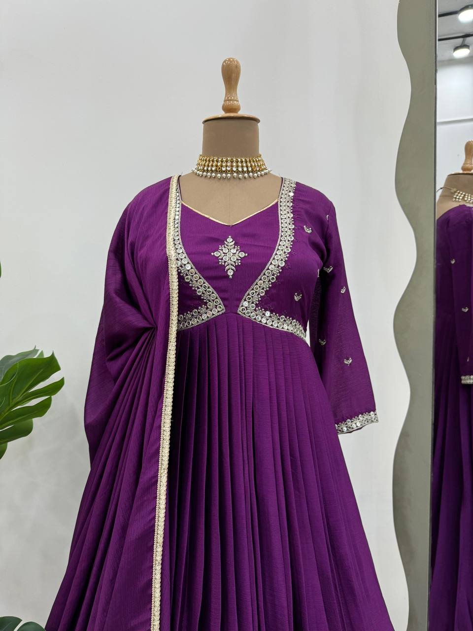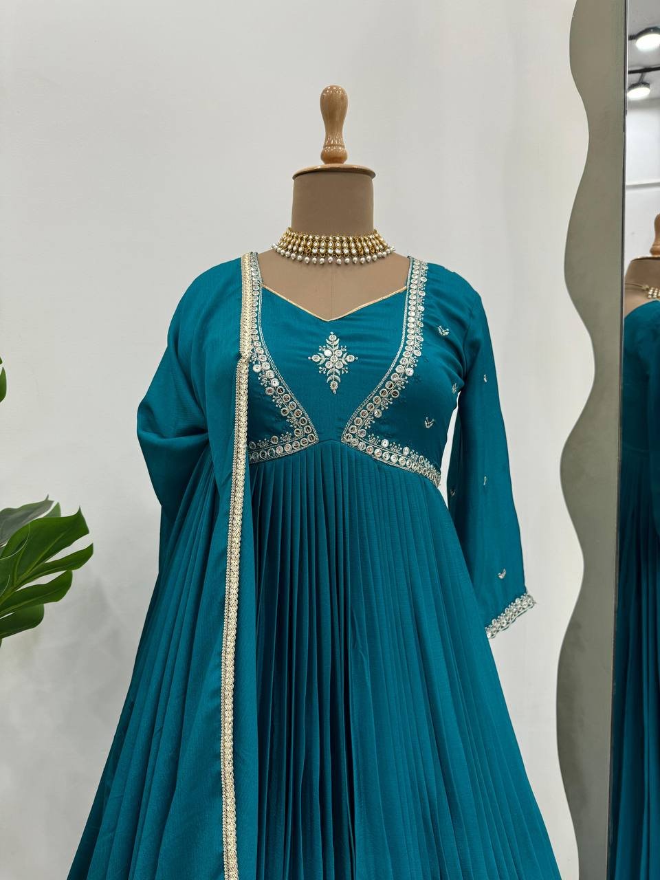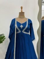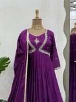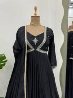 Premium designer gown set from the 5000 Series crafted in elegant chinon silk fabric featuring detailed thread and sequence embroidery work. The long 52-inch top provides a graceful flow and rich ethnic appeal, complemented with a soft micro inner lining for all-day comfort.