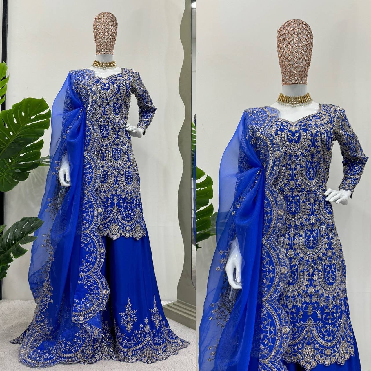 Be the first to review “New 5000 Series Designer Plazo Set | Chinon Silk Thread & Sequence Work Suit | Organza Cutwork Dupatta | BRAD LEEZO” Cancel reply