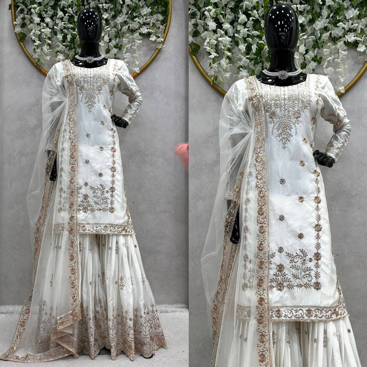 New 5000 Series Designer Sharara Set | Chinon Silk Thread & Sequence Work | Butterfly Net Dupatta | BRAD LEEZO Original price was: ₹1,999.00.Current price is: ₹1,249.00.
