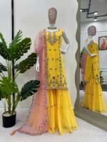 Be the first to review “New 5000 Series Designer Sharara Set | Faux Georgette Thread & Sequence Work | Butterfly Net Cutwork Dupatta | BRAD LEEZO”