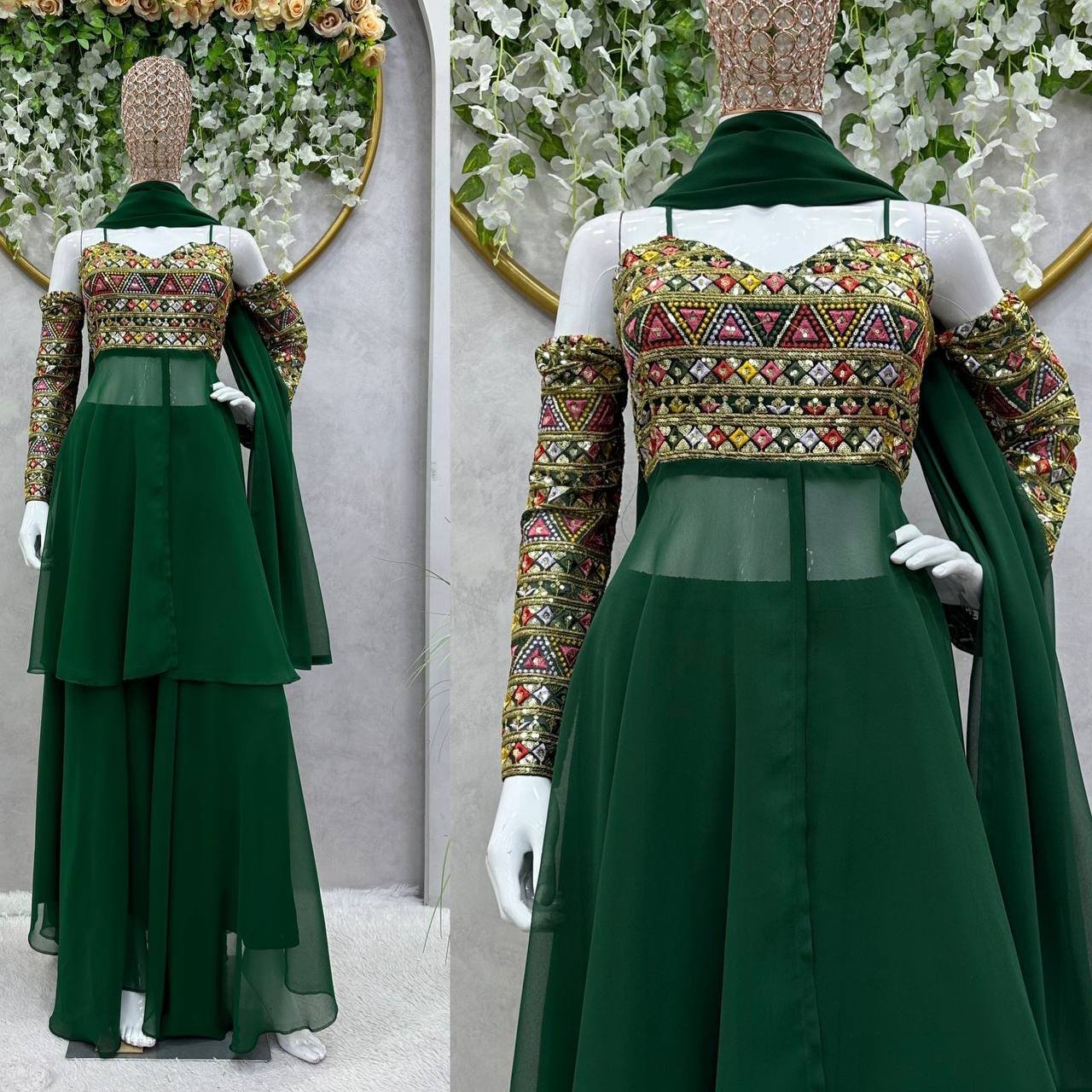 New 5000 Series Designer Sharara Set | Faux Georgette Thread & Sequence Work Suit | BRAD LEEZO