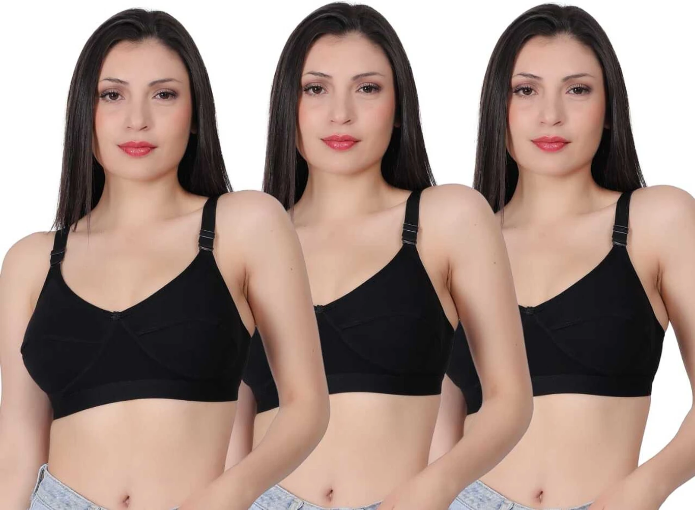 Pack of 3 Women Full Coverage Non Padded Bra (Black) | Nuvera
