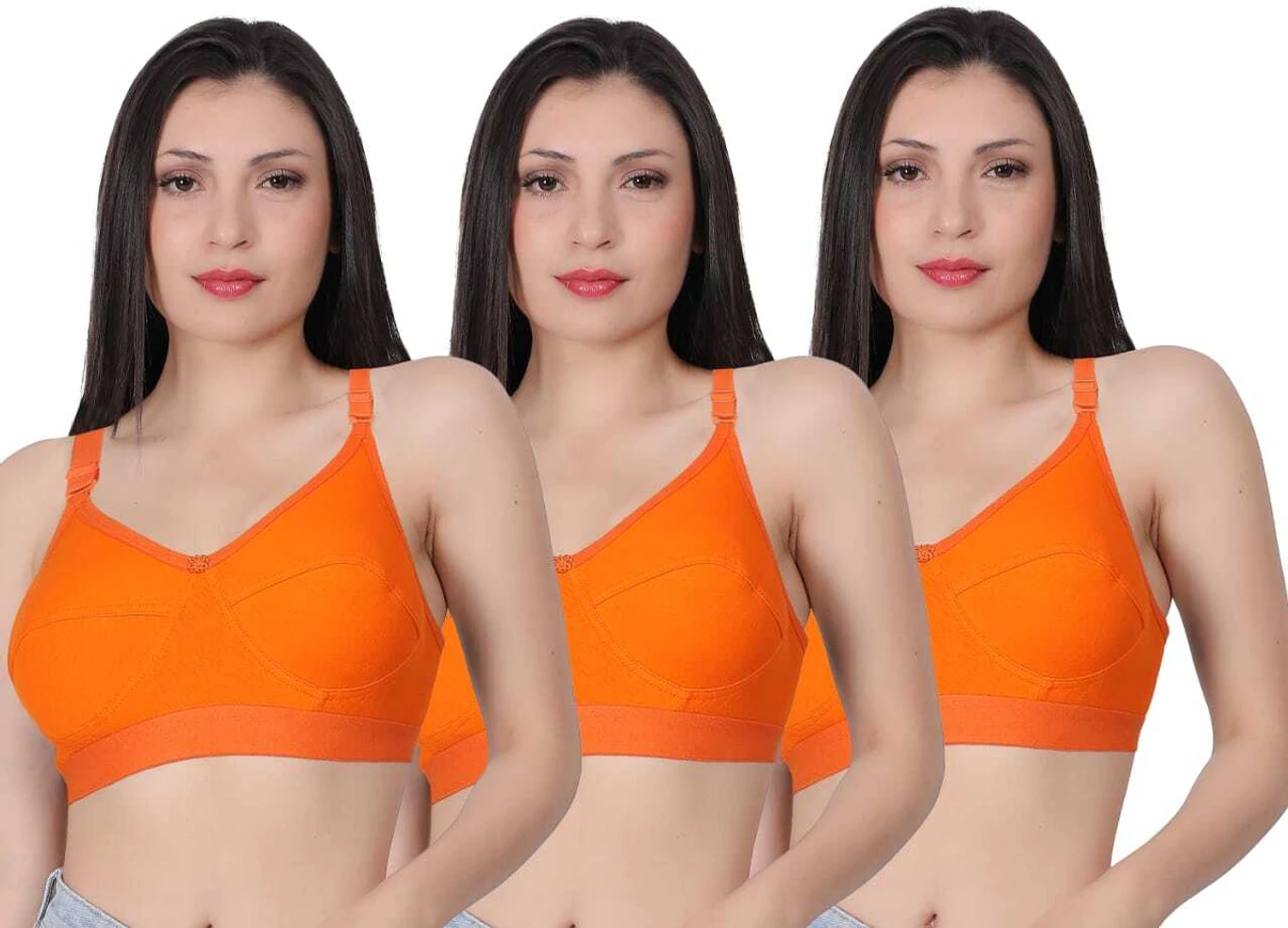 Pack of 3 Women Full Coverage Non Padded Bra (Orange) | Nuvera