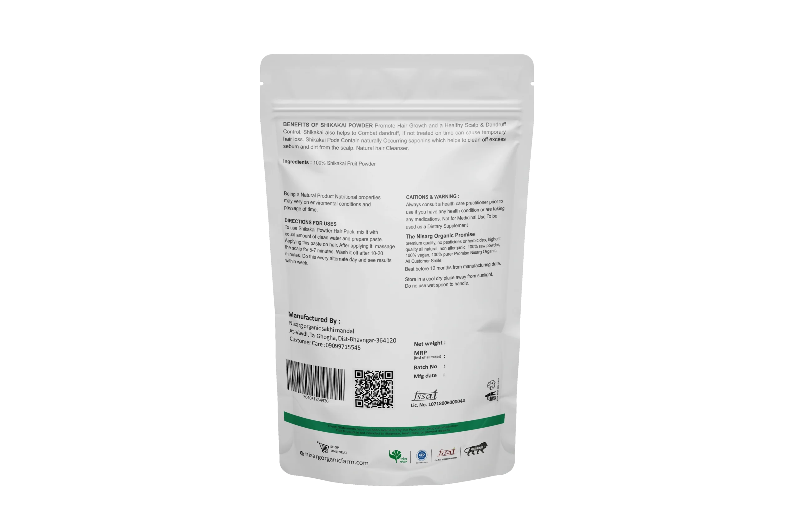 - 100% Pure Shikakai Powder: Made from organically grown Shikakai pods, free from chemicals, additives, and artificial preservatives.