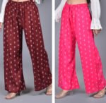 PALAZZO DESIGNS Pack of 2 Women Relaxed Pink, Maroon Viscose Rayon Trousers | TA TECHNOLOGIE