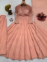 Presenting the new 5000 Series collection – crafted with upgraded quality and elegant design. This beautiful faux georgette top-plazo set is designed to offer a perfect blend of sophistication and comfort.