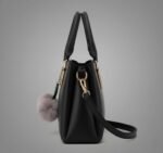 Premium Quality Women’s Stylish Black Handbag | Elegant PU Leather Shoulder & Tote Bag for Ladies | Spacious Multi-Compartment Design with Golden Hardware & Fur Ball Charm | Perfect for Office, Daily Use, Travel & Parties | WUGO