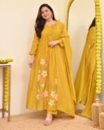 Be the first to review “Pure Cotton A-Line Kurta Set with Heavy Thread Embroidery – yellow | Attirecarat”