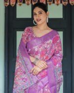 Be the first to review “Purple and Pink Floral Printed Pure Cotton Linen Saree with Blouse and Tassels | Crown Fashion” Cancel reply