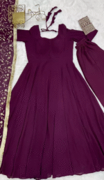 Turn heads with this stylish deep plum Anarkali suit set, designed to blend elegance with modern ethnic charm. The outfit features a graceful flared silhouette paired with a beautifully printed and embroidered dupatta that adds richness to the overall look. Perfect for festive occasions and evening events, this ensemble offers both comfort and sophistication.