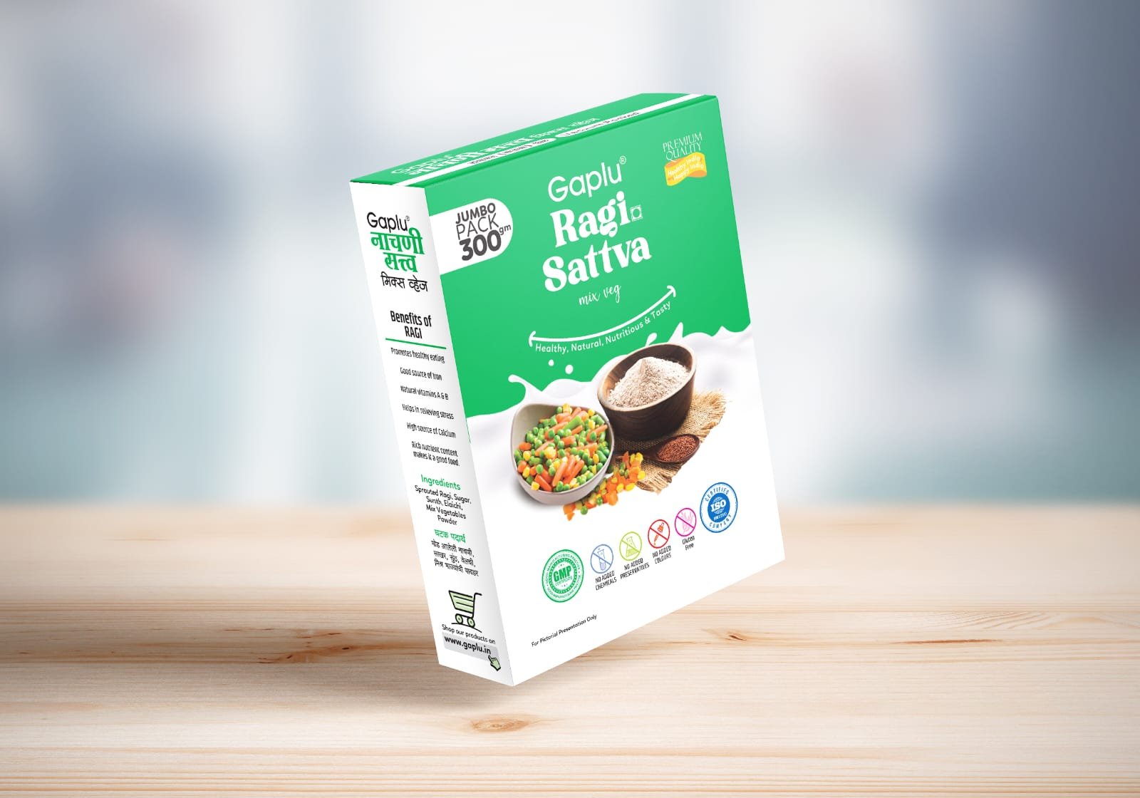 Fuel your body with wholesome nutrition using the Gaplu Ragi Sattva Combo Pack, now available in three unique and flavorful variants – Pomegranate, Multigrain Mango, and Mix Veg.