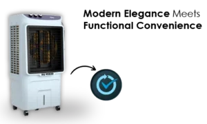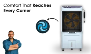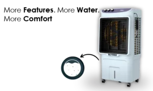 The Riad 18100 air cooler delivers powerful, efficient cooling with a 45-foot air throw and coverage of up to 1170 sq. ft. Built with a high-performance motor, it ensures steady airflow and reliable comfort for large living and work areas while maintaining low energy consumption.