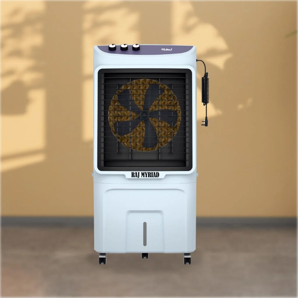 The Riad 18100 air cooler delivers powerful, efficient cooling with a 45-foot air throw and coverage of up to 1170 sq. ft. Built with a high-performance motor, it ensures steady airflow and reliable comfort for large living and work areas while maintaining low energy consumption.