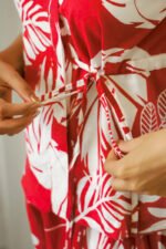 Bright red color with stylish white leaf print