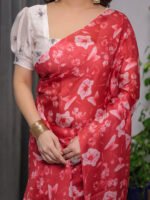 Be the first to review “Red Satin Georgette Floral Printed Saree with Attached Blouse – Elegant Soft-Flow Designer Saree for Parties & Festive Wear | Crown Fashion”