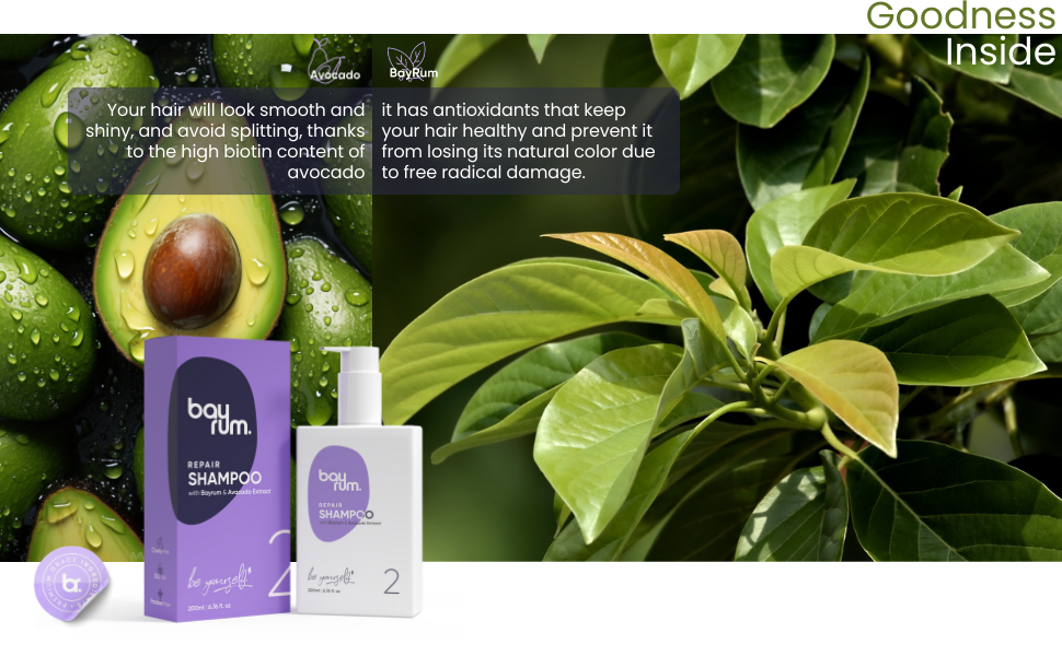 Repair Shampoo for Dry & Damaged Hair | Frizz Away Shampoo for Women & Men | Thick Hair Shampoo with Bayrum & Avocado Extract | Smooth & Shiny Hair | Sulfate-Free & Paraben-Free | 200ml | BAYRUM