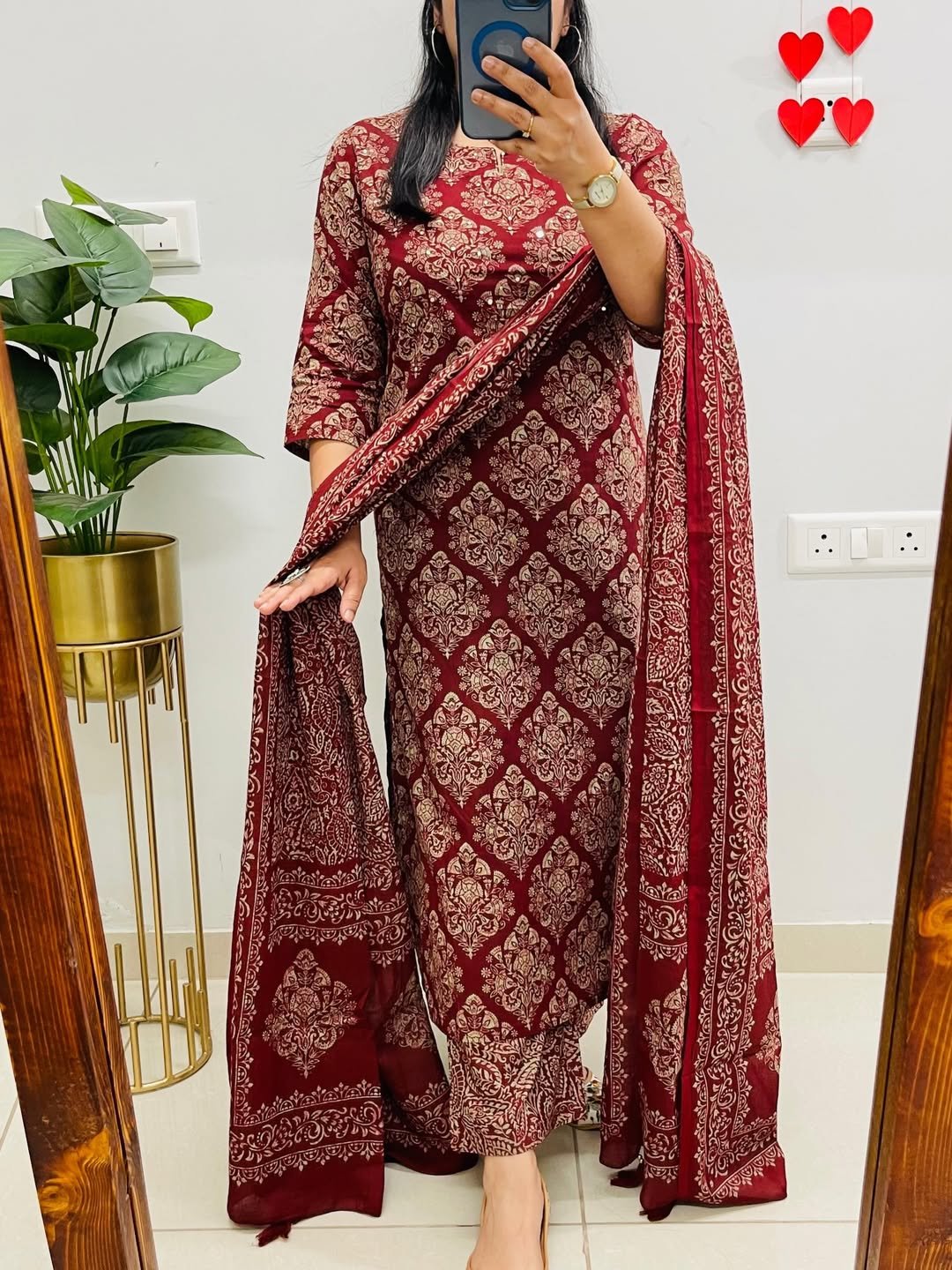 Cohesive Styling: A perfectly matched 3-piece set where the print flows seamlessly from the kurta to the accessories.