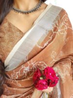 Be the first to review “Rust Brown Pure Linen Saree with White Floral Motifs and Tassel Detailing | Crown Fashion” Cancel reply