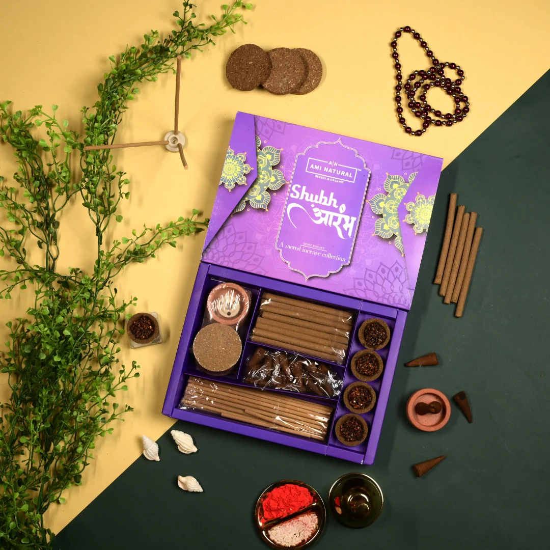 Create a serene and auspicious atmosphere with the Shubh Arambh Luxury Incense Gift Box, thoughtfully curated with 68 premium incense products. Hand-rolled using pure Ayurvedic ingredients, this collection offers a toxin-free and spiritually uplifting experience for your daily rituals and special occasions.
