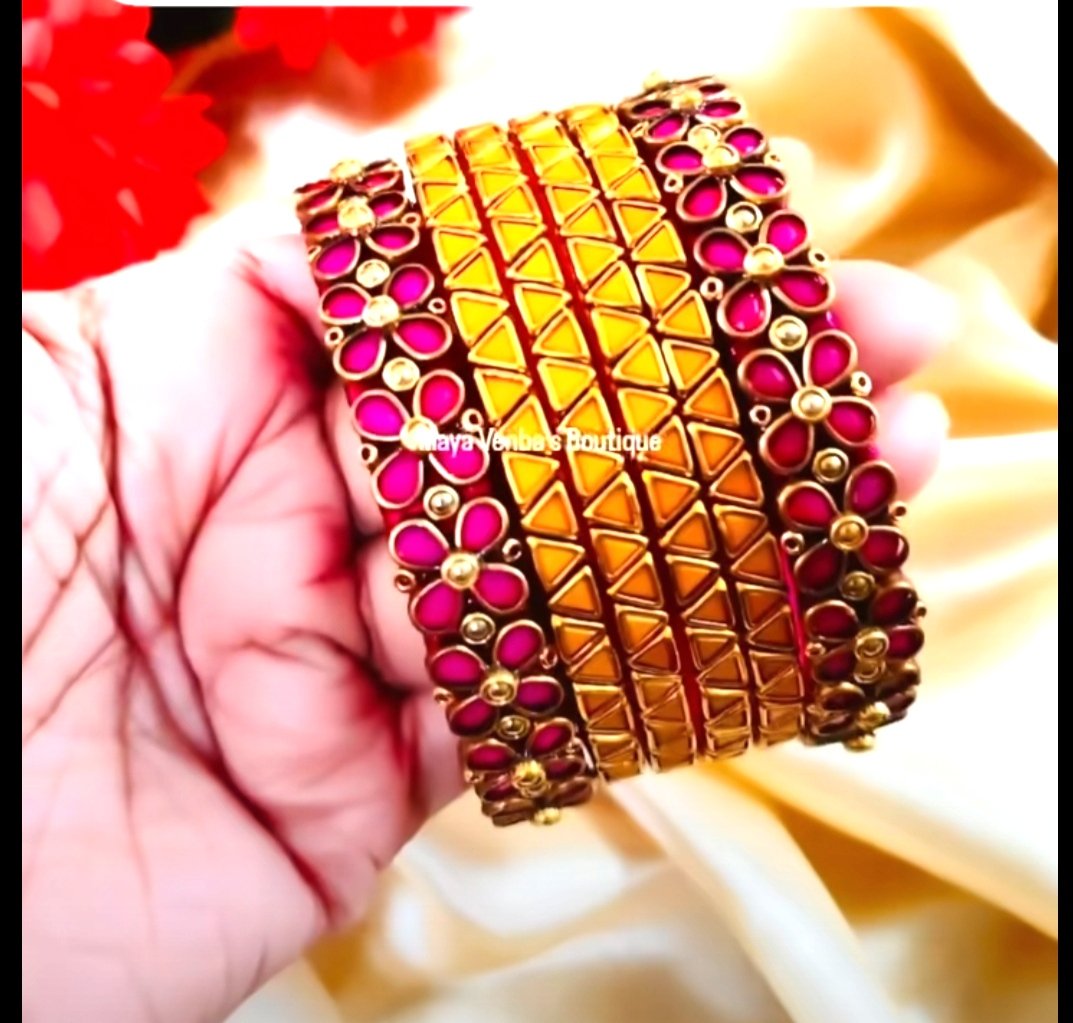 Handcrafted Hot Pink Beaded Heart Statement Earrings | Deepti Handicraft