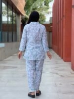 This women’s co-ord set combines timeless floral design with a modern silhouette. The comfortable cotton fabric keeps you cool and relaxed, while the coordinated top and pants create a polished and effortless look. Whether you’re stepping out for a casual day or relaxing with friends, this outfit provides both style and comfort.