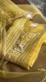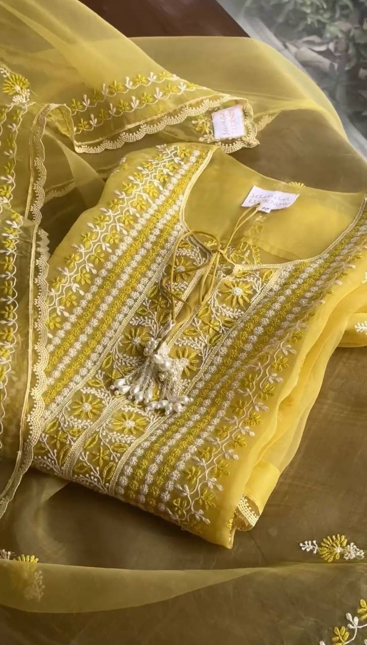 Stay stylish and comfortable this season with this beautiful Summer Special 5000 Series Suit Set. Designed in refreshing shades of yellow Tabby Organza and sky blue Chanderi, this outfit brings a perfect blend of elegance and seasonal comfort.