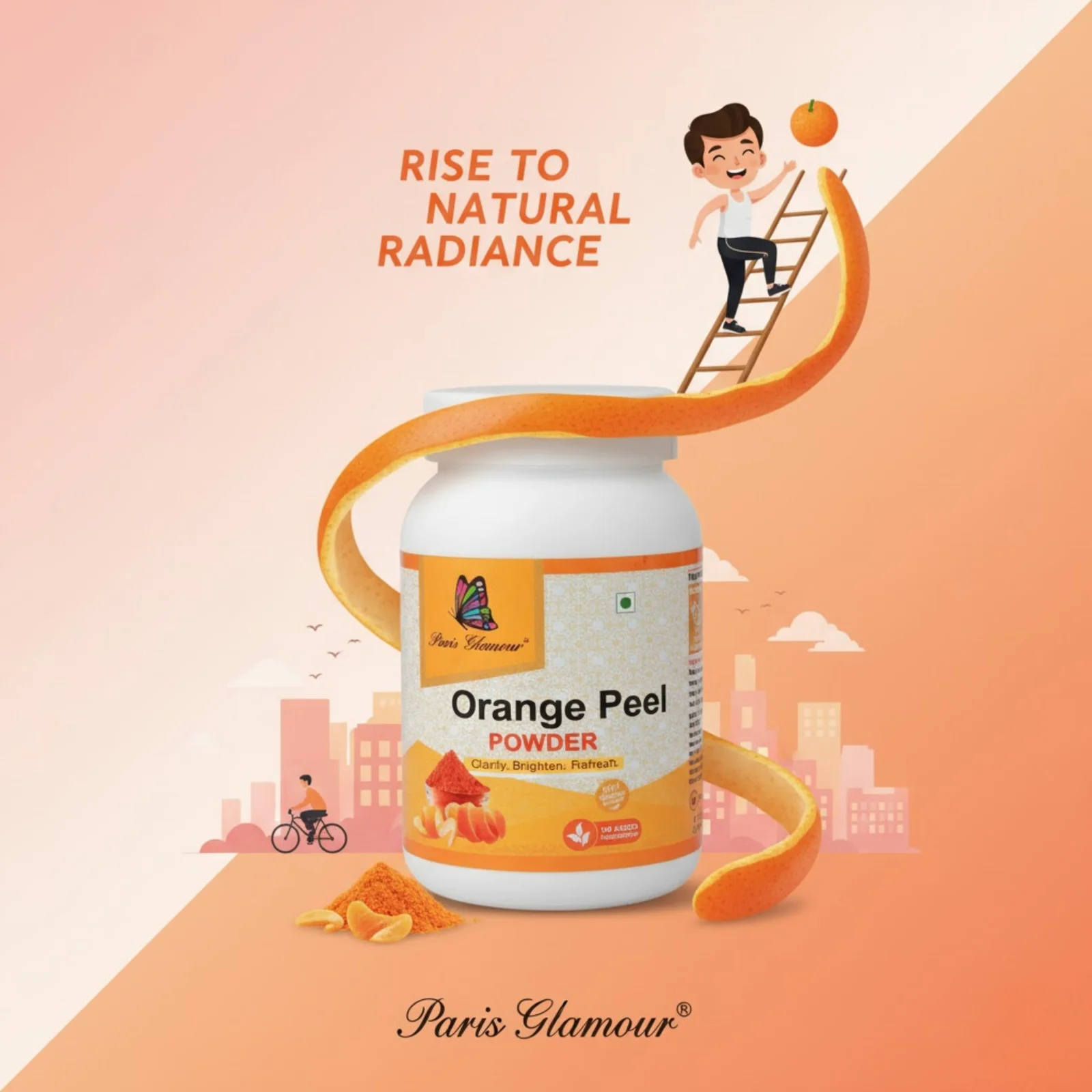Get back your natural glow with Paris Glamour Tan Remover Kit. This 100% natural blend of Orange Peel Powder, Papaya Fruit Powder, and Amla Powder is made to erase sun tan, dullness, and patchy skin. Rich in Vitamin C and natural enzymes, it gently exfoliates dead skin, reduces pigmentation, and reveals brighter, even-toned skin. No bleach, no harsh chemicals – only fruit and herb power for safe de-tanning.