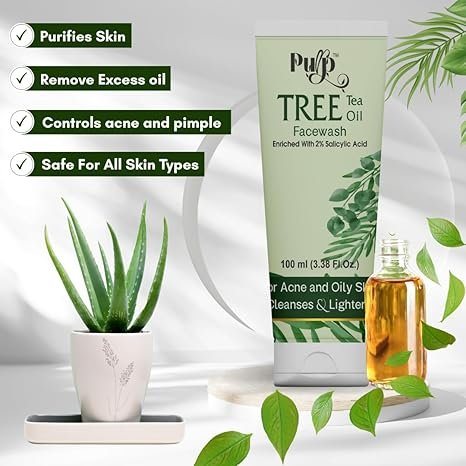 - This face wash is formulated with Tea Tree Oil and 2% Salicylic Acid to help cleanse pores deeply, remove excess oil, and support clearer-looking skin with regular use.