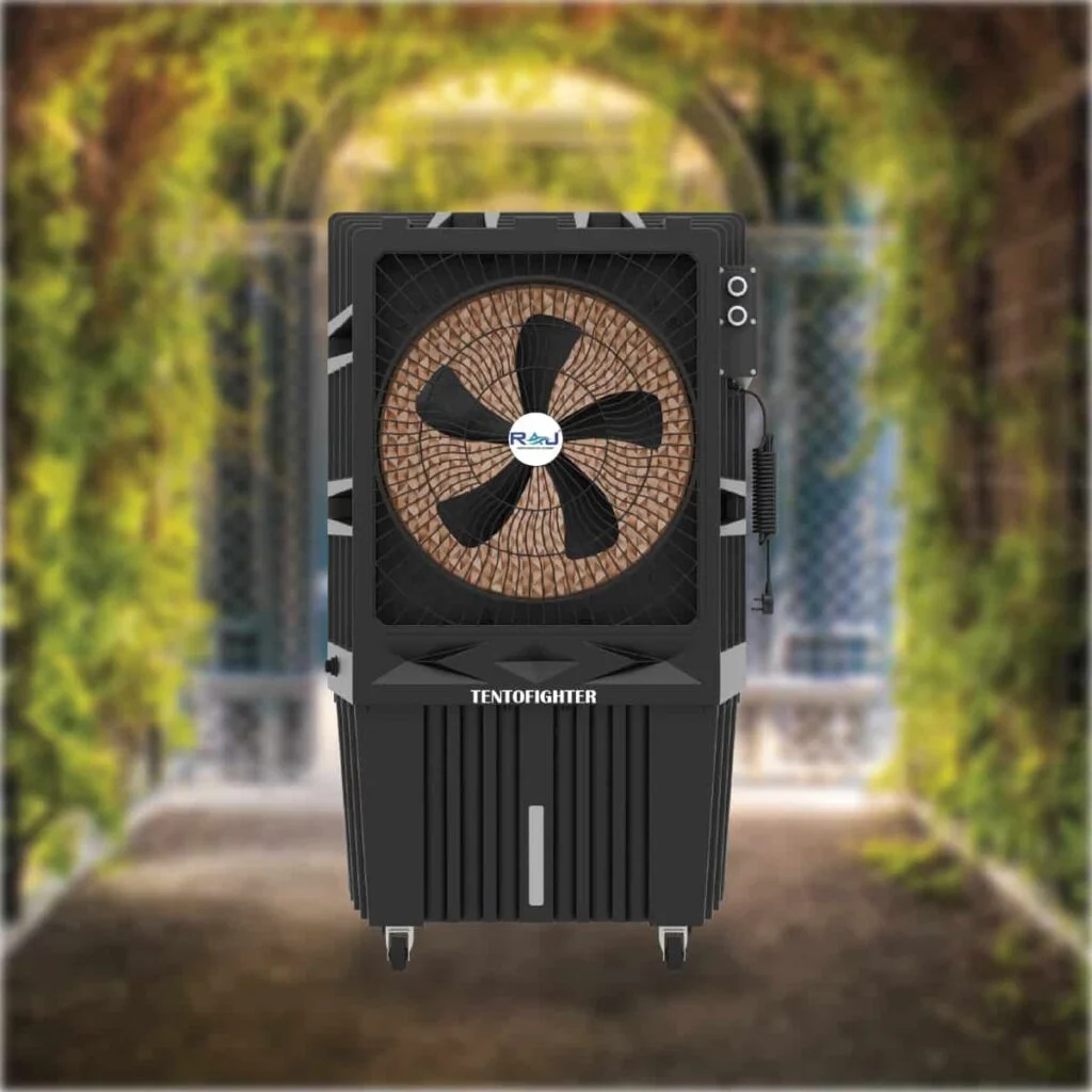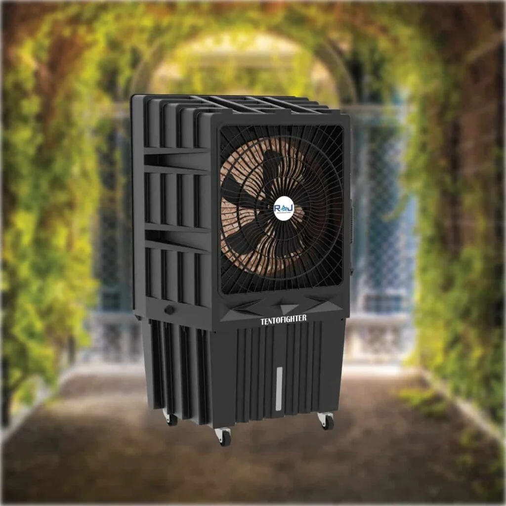 Introducing the TENTO FIGHTER 20 air cooler, designed for the tent industry. With a 3-speed motor, 125-liter capacity, and efficient 180W power consumption, it provides powerful, low-noise cooling at 1300 RPM. Perfect for outdoor settings, it ensures comfort in any tent environment.