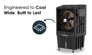 Enjoy powerful cooling with the 18″ fan blade and bullet air throw, delivering maximum airflow to every corner. The unbreakable 5D grill ensures durability for long-lasting performance.