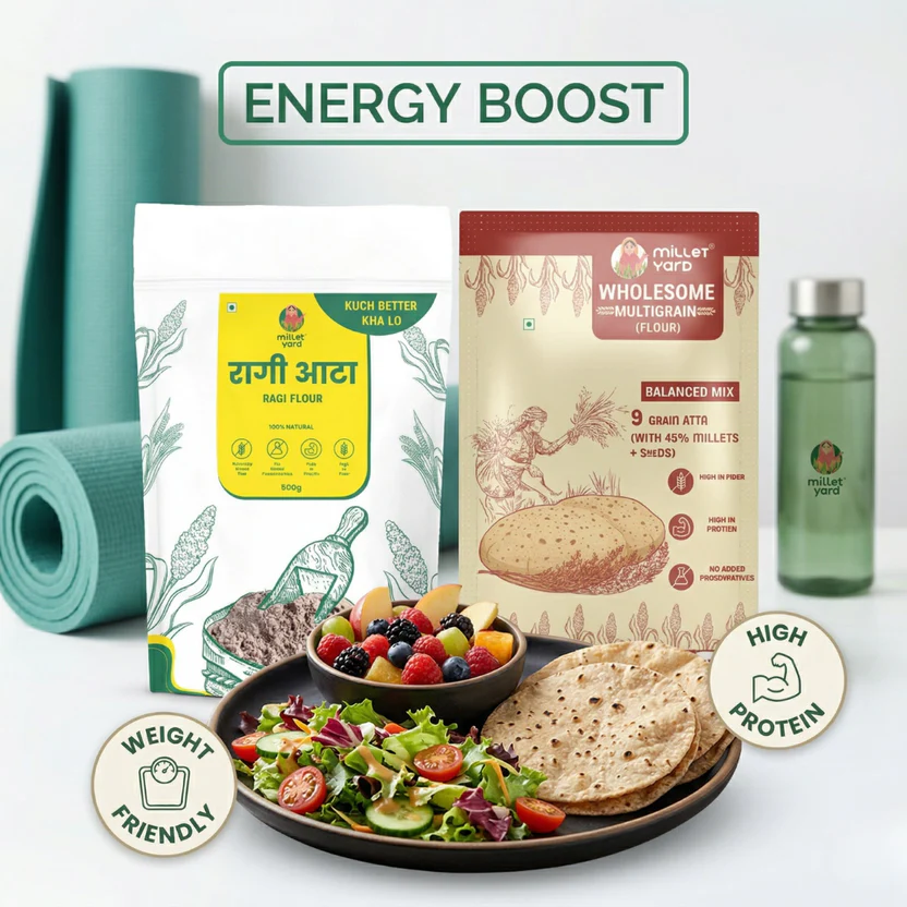 The Nutrient Pair – Multigrain Flour (1kg) + Ragi Flour (1kg) | High Fibre Millet Blend for Daily Nutrition | Millet Yard